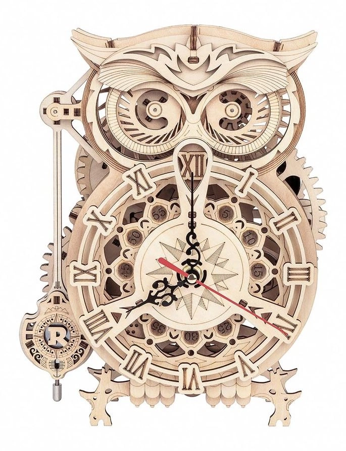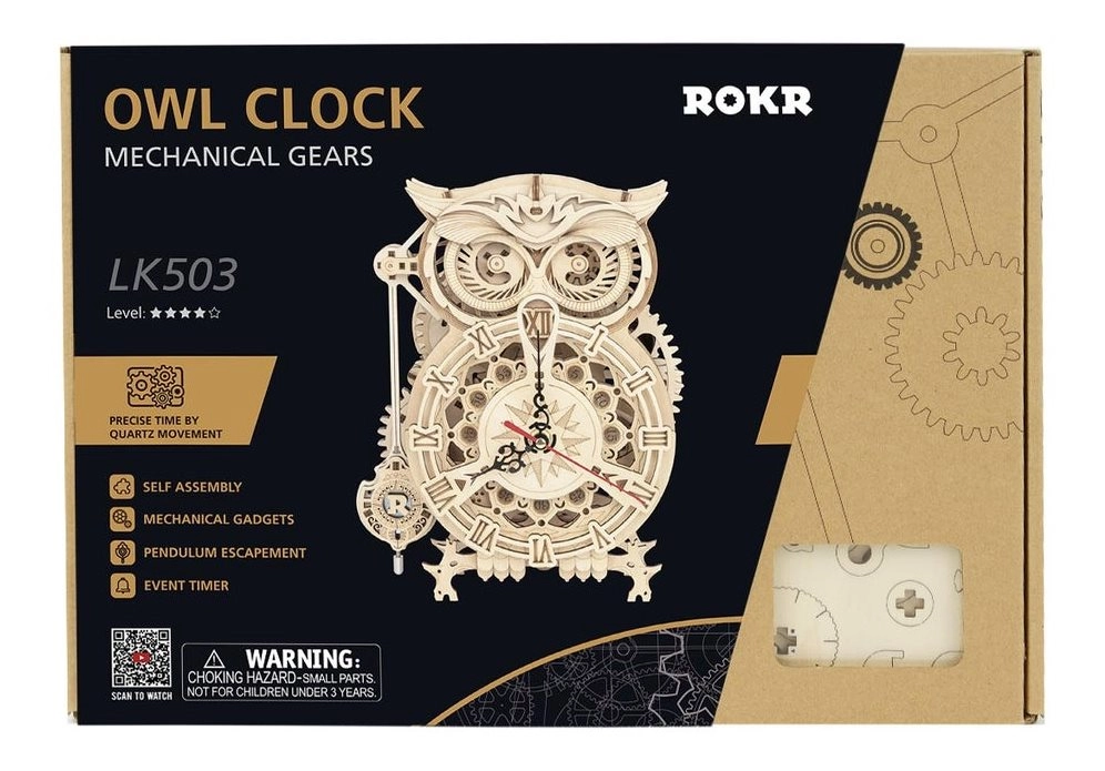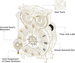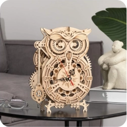3D koka mehāniskā puzle Pūču pulkstenis