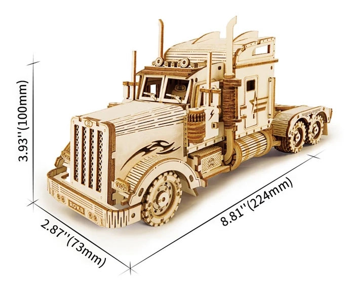 Šis detalizētais un rūpīgi izstrādātais kravas automašīnas modelis ir lielisks precīzas meistardarba piemērs. Izgatavots no ar lāzeru izgrieztiem gabaliņiem no 2 mm liepas saplākšņa, kurus ir viegli izspiest no pamatnes. Mērķis ir attīstīt jūsu tehnisko domāšanu, iztēli un sīko motoriku.