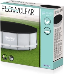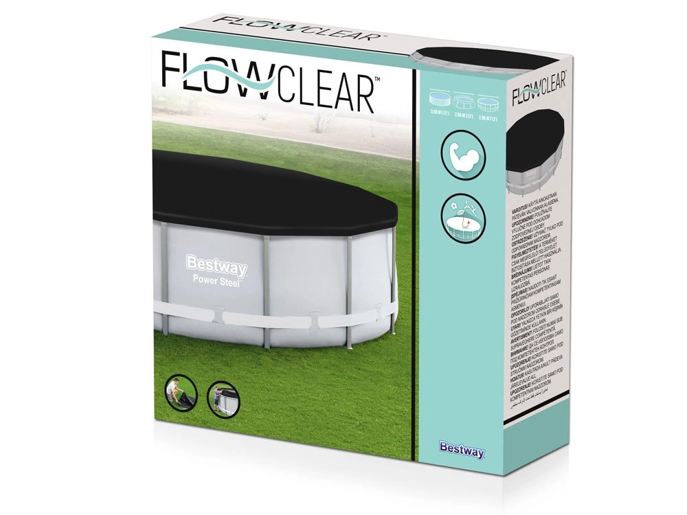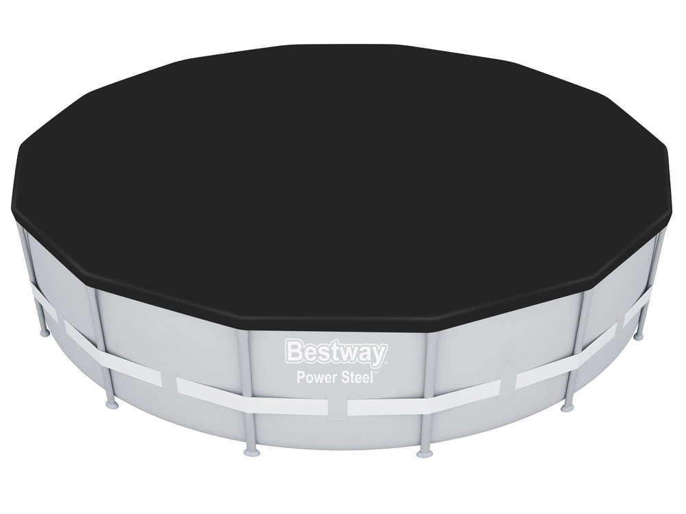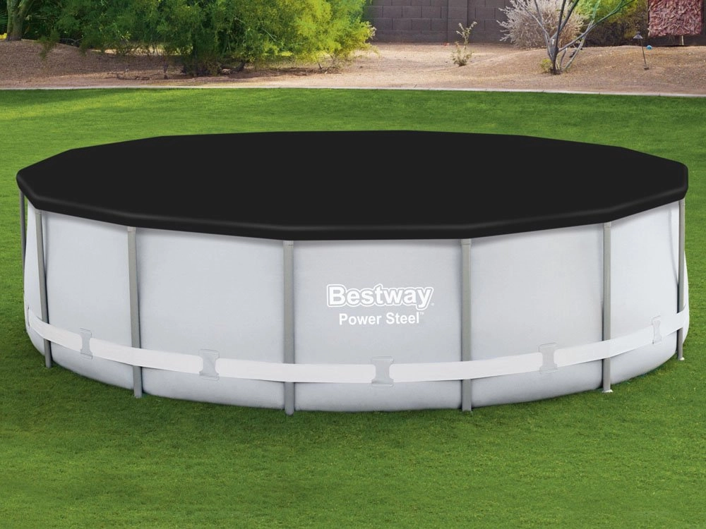 Universāls Bestway pārsegs baseiniem ar 396 cm diametru, piemērots gan karkasa, gan pašnesošajiem baseiniem. Aizsargā no kukaiņiem, putniem, lapām un lietus.