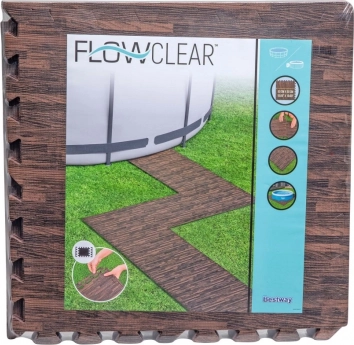 Izveidojiet ideālu vietu savam baseinam ar BESTWAY putu paklājiem. Šie paklāji ar koka rakstu nodrošina mīkstu un aizsargājošu virsmu, kas pasargā ne tikai baseina apakšdaļu, bet arī jūsu zālienu no bojājumiem. Pateicoties viegla tipa savstarpējai savienošanai, atsevišķos elementus var salikt nepieciešamajā formā un izmērā.