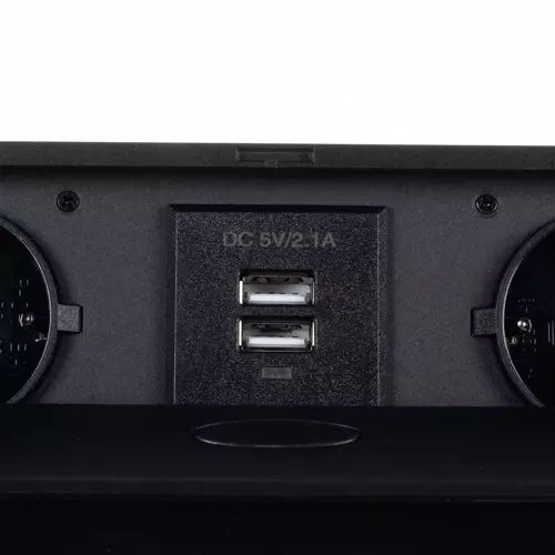 Saņemiet tīru un drošu piekļuvi barošanai tieši tur, kur tā nepieciešama. Šī iebūvējamā rozetes sloksne apvieno 2 Schuko tīkla kontaktligzdas un 2 USB portus 5 V/2,1 A kompaktā konstrukcijā, kas eleganti paslēpjas galda vai darba virsmā. Nospiežot pogu, panelis vienmērīgi izslīd virs virsmas, bet pēc lietošanas to var viegli noslēpt.