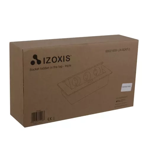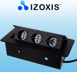 Šī iebūvētā trīskāršā rozete IZOXIS apvieno modernu dizainu ar praktisku risinājumu mājām, birojiem un konferenču telpām. Tievā, plakana mala perfekti līdzinās virsmai, bet melnais tonis saskan ar lielāko daļu interjeru. Augstas kvalitātes metāla izpildījums nodrošina izturību un ilgmūžību.