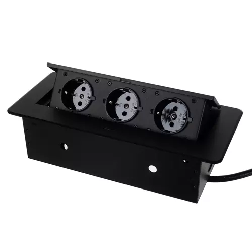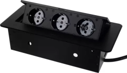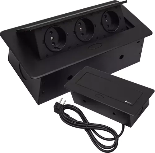 Eleganta iebūvējama rozetes sliede darba virsmām un galdiem ar trim Schuko rozetēm nodrošina diskrētu uzstādīšanu, tīru izskatu bez kabeļu jucekļa un drošu 230 V barošanu. Pateicoties izvelkamajam mehānismam, elektrobarošana ir pa rokai, kad nepieciešams, un paslēpta, kad nav.