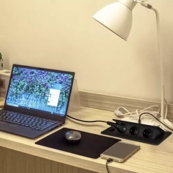 Panelis paredzēts montāžai darba virsmā, galda virsmā vai konferenču galdā – vertikāli vai horizontāli. Nospiest pogu – rozetes vienmērīgi izslīd virs virsmas; pēc lietošanas tās viegli noslēpjat, saglabājot kārtīgu un drošu darba vietu.