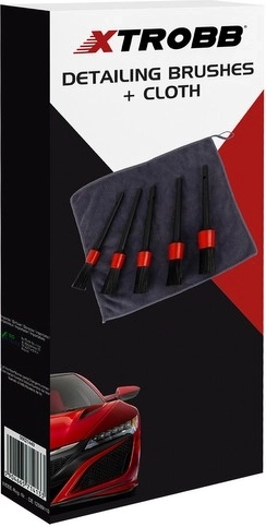 Xtrobb detalizēšanas otu un mikrošķiedras komplekts ir ideāls transportlīdzekļa salona kopšanai. Ar piecām dažāda izmēra otām un mikrošķiedras lupatiņu varēsiet piekļūt arī grūti sasniedzamām vietām. Ideāls putekļu un netīrumu noņemšanai šaurās spraugās un automobiļa detaļās.