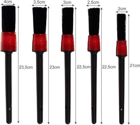 Komplektā ir piecas dažāda izmēra otas, kas ļauj tīrīt pat vismazākās spraugas jūsu transportlīdzeklī.