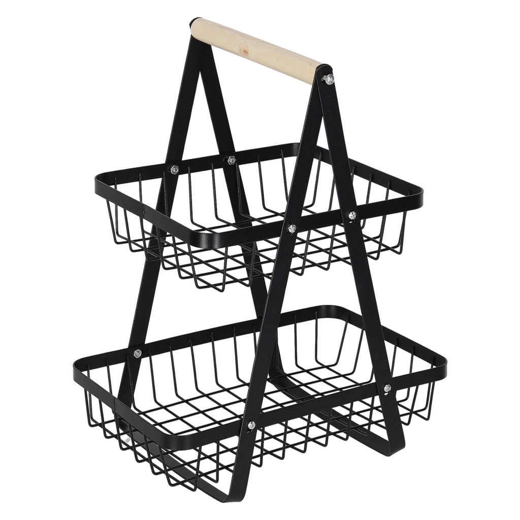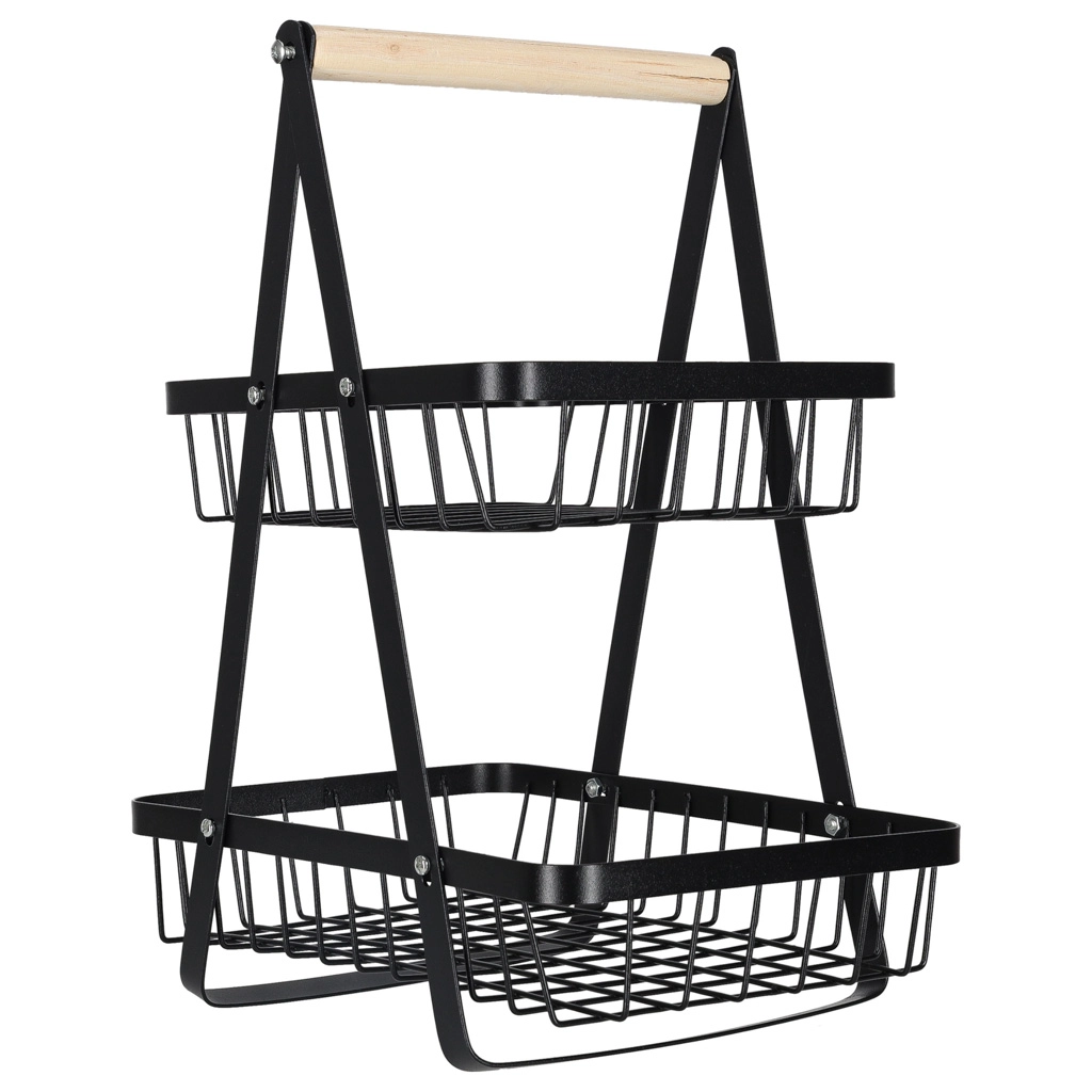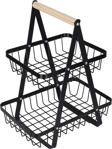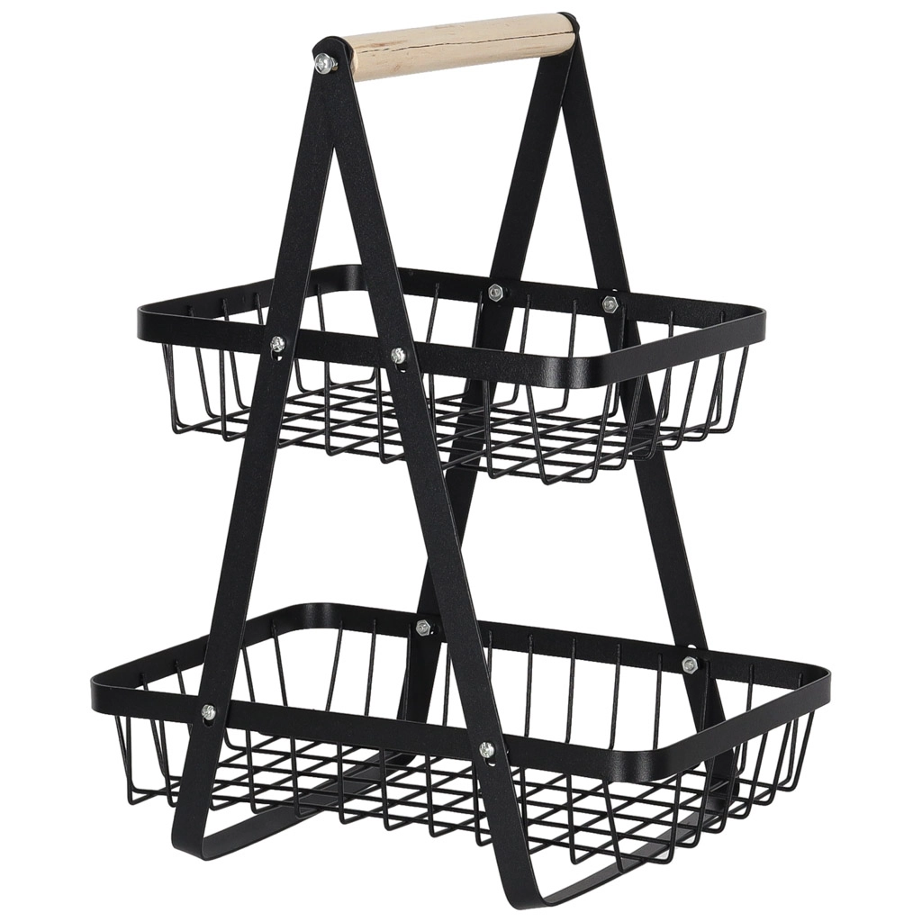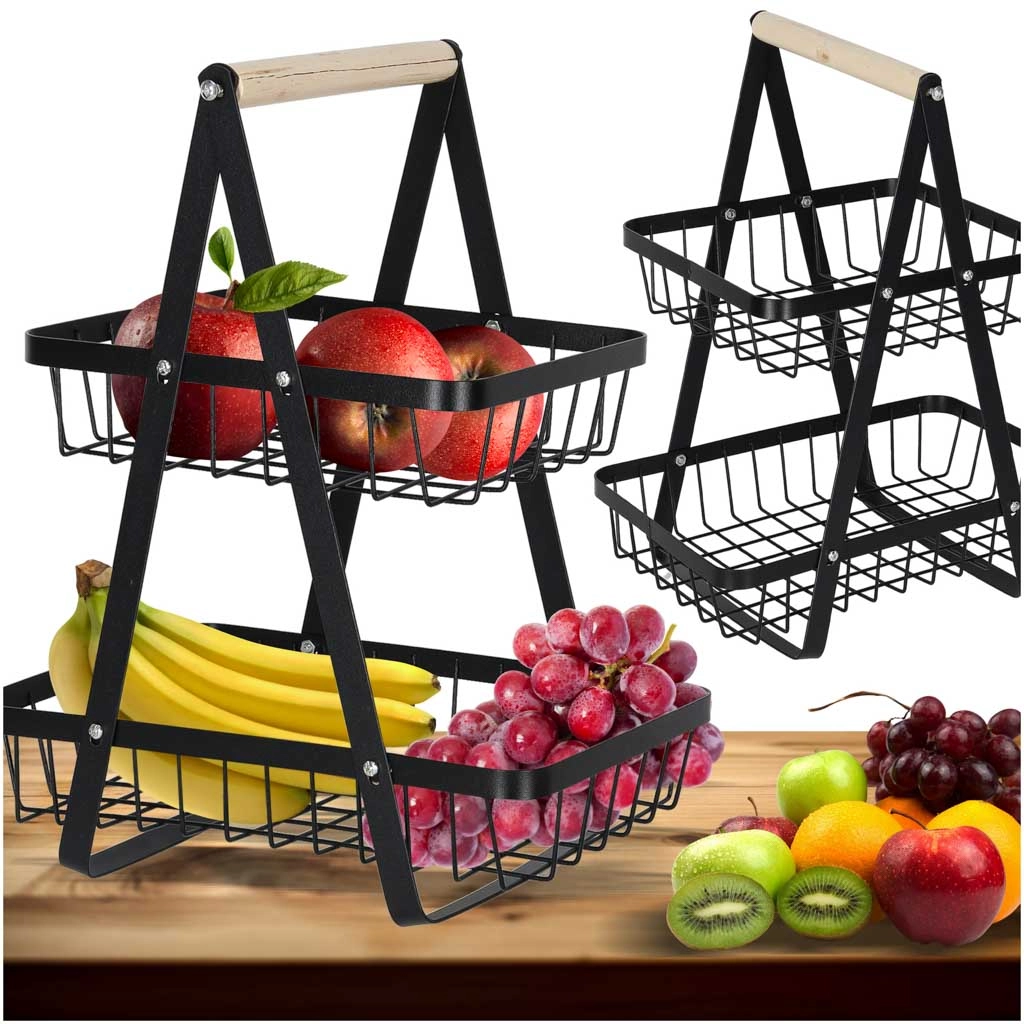 Koka rokturis nodrošina ērtu pārnēsāšanu jebkur, kur nepieciešams. Lielākais apakšējais grozs ir piemērots āboliem, apelsīniem vai dārzeņiem, mazākais augšējais grozs — banāniem, citrusaugļiem vai sīkumiem. Izturīgā metāla konstrukcija garantē stabilitāti un ilgu kalpošanas laiku.