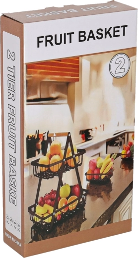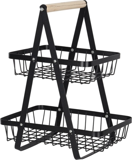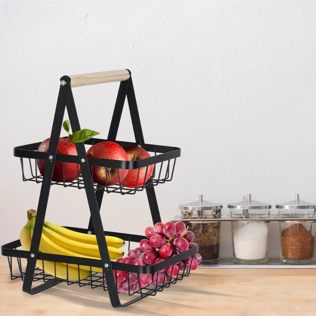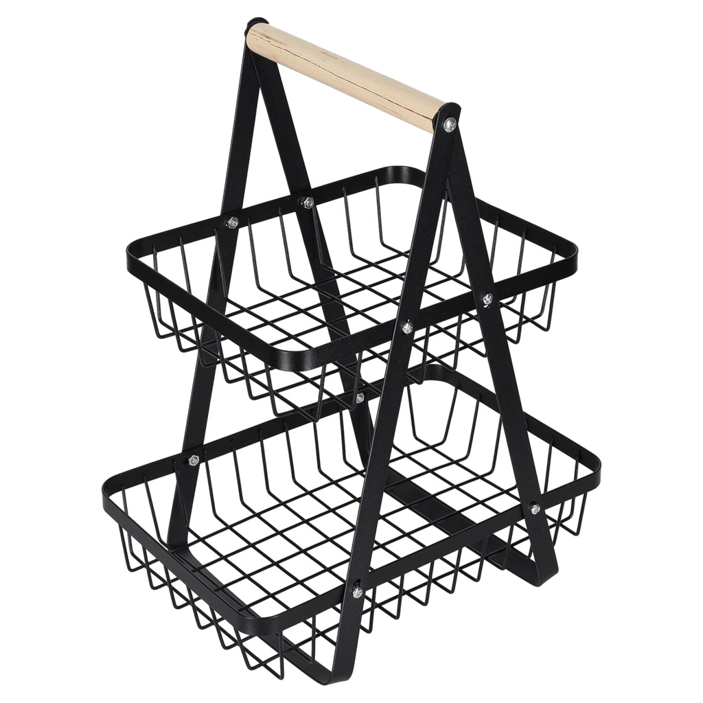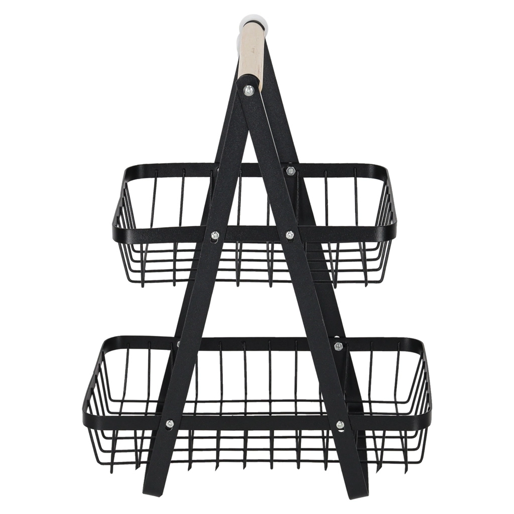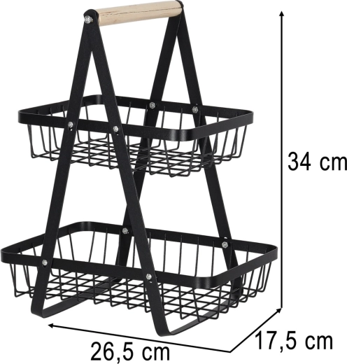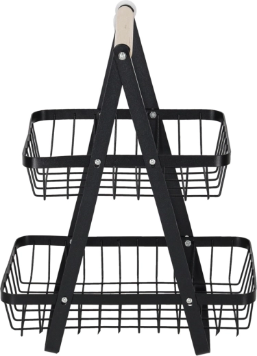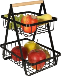 Koka rokturis nodrošina ērtu pārnēsāšanu jebkur, kur nepieciešams. Lielākais apakšējais grozs ir piemērots āboliem, apelsīniem vai dārzeņiem, mazākais augšējais grozs — banāniem, citrusaugļiem vai sīkumiem. Izturīgā metāla konstrukcija garantē stabilitāti un ilgu kalpošanas laiku.