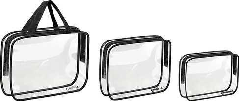 Komplekts ar 3 caurspīdīgām somām kosmētikai un sīkumiem palīdzēs uzturēt kārtību čemodānā, mugursomā un vannasistabā. Dažādie izmēri ļauj gudri sadalīt grimu, tualetes piederumus un ceļojumu pudelītes. Caurspīdīgais materiāls paātrina drošības pārbaudi lidostā un atvieglo nepieciešamā priekšmeta atrašanu.