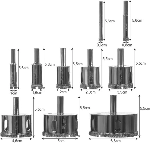 BIGSTREN 10 dimanta vainagurbju komplekts aptver biežāk lietotos santehnikas un elektroinstalācijas diametrus: 6, 8, 10, 16, 20, 28, 35, 45, 50 un 68 mm. Pateicoties dimanta pārklājumam, urbji nodrošina lielisku kalpošanas laiku un maksimālu precizitāti bez flīžu malu atlūzumiem. Var urbt mitri ilgākam kalpošanas laikam un ātrākai siltuma novadīšanai vai sausi īsākiem posmiem.