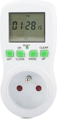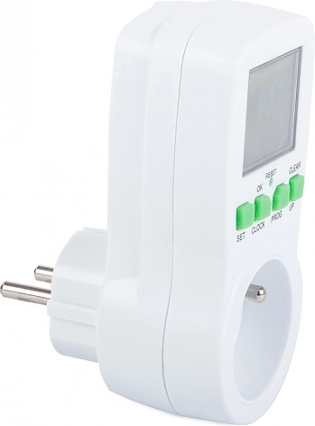 Digitālais rozetes taimeris ir ideāli piemērots lampām, apkurei, akvārijiem, ventilatoriem vai lādētājiem. Pateicoties 16 ieslēgšanas/izslēgšanas programmām, viegli izveidosiet nedēļas plānu un ļausiet taimerim strādāt jūsu vietā. Iebūvēta baterija saglabā iestatījumus arī strāvas zuduma gadījumā, bet pārskatāms LCD displejs ar vienkāršām pogām paātrina iestatīšanu.