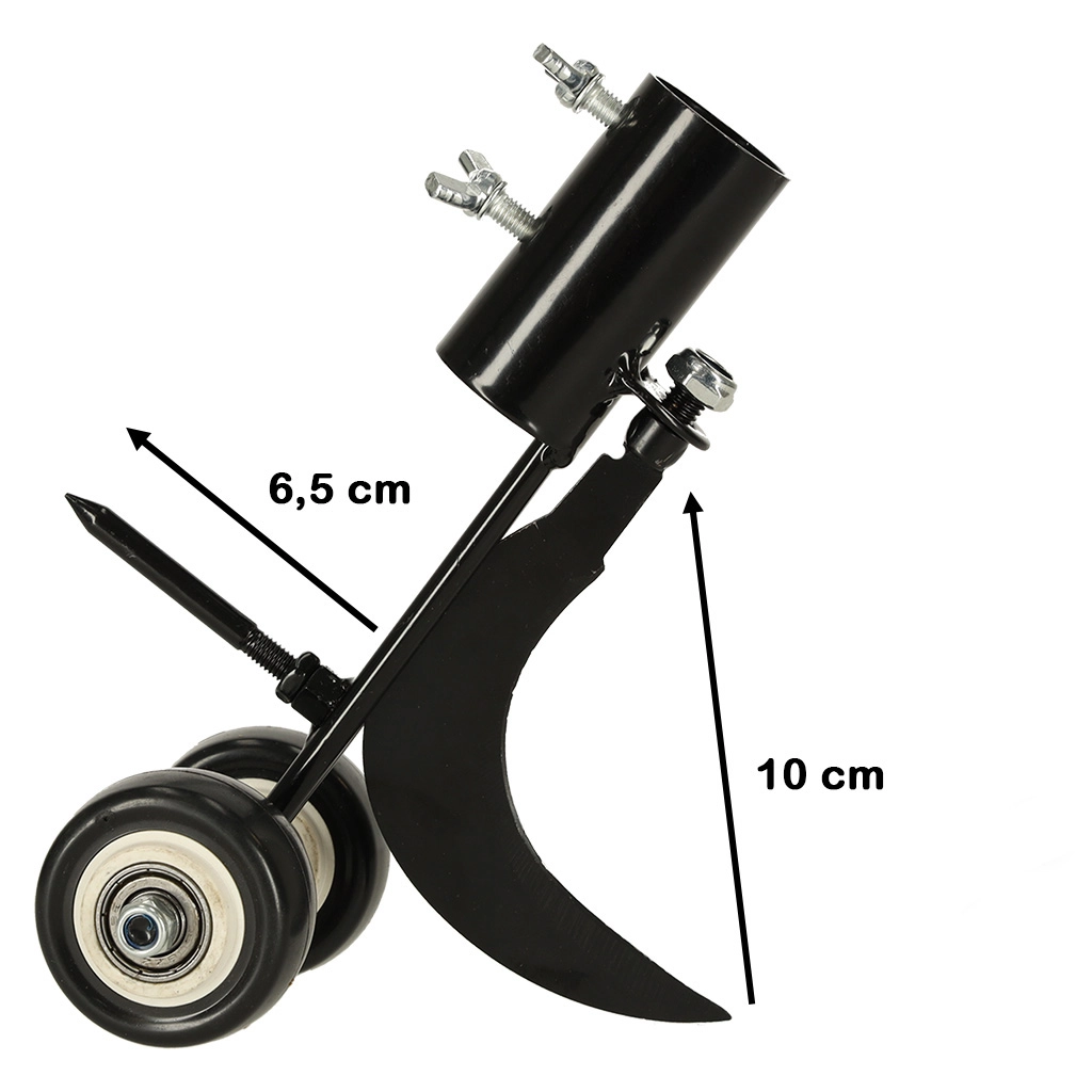 Dubultie ritenīši nodrošina rīka stabilitāti un precīzu vadību gar maliņu, lai jūs strādātu ātrāk un ar tīru rezultātu. Korpuss no izturīga tērauda ar aizsargpārklājumu pret koroziju ir piemērots ilgstošai lietošanai ārā. To viegli piestiprināt pie sava kāta ar diametru līdz 28 mm, lai darbs būtu maksimāli ērts.