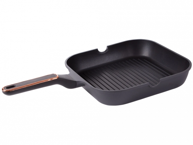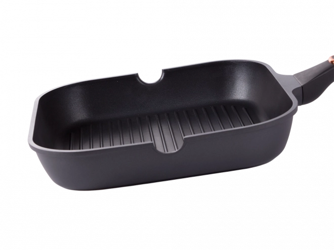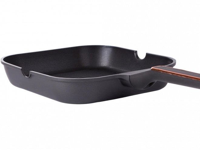 Izturīga 28 cm grilpanna no spiedliešanas alumīnija ar nelīpošu pārklājumu ērtai gatavošanai un tīrīšanai. Piemērota indukcijai, gāzei, stikla keramikai un elektrībai. Rievotā virsma veido grila efektu, divpusējie izliešanas snīpji atvieglo šķidruma nolaišanu, bet ergonomiska roktura forma nodrošina drošu satvērienu.