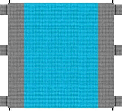 Sestās kabatas var piepildīt ar smiltīm, stūra cilpas nostiprināt ar komplektā esošajiem mietiņiem – paklājs paliks savā vietā arī brāzmainā vējā.