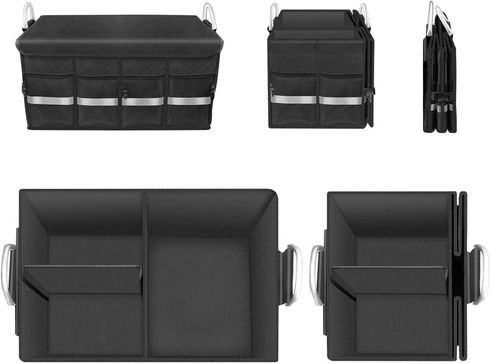 Izturīgs MDF dibens stabilizē kravu, bet salokāmais vāks ar lipekļa aizdari pasargā saturu arī tad, kad organizatora tilpums ir samazināts. Nekas neizbirst, un bagāžnieks paliek tīrs.
