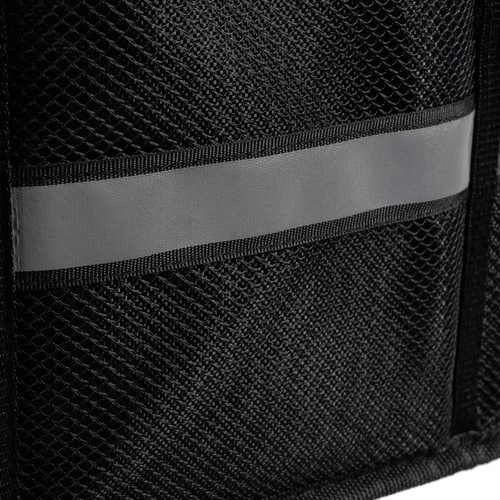 Kvalitatīvi materiāli un pārdomātas detaļas garantē ilgu kalpošanas laiku. Izturīgs Oxford 600 audums, MDF pastiprinājumi un metāla rokturi iztur ikdienas lietošanu. Četras priekšējās tīklveida kabatas un sānu kabata ar lipekļa aizdari ietilpina sīkumus, bet atstarojošie elementi palielina redzamību. Salocīts aizņem minimumu vietas – ideāli jebkurai vieglajai automašīnai, SUV vai furgonam.