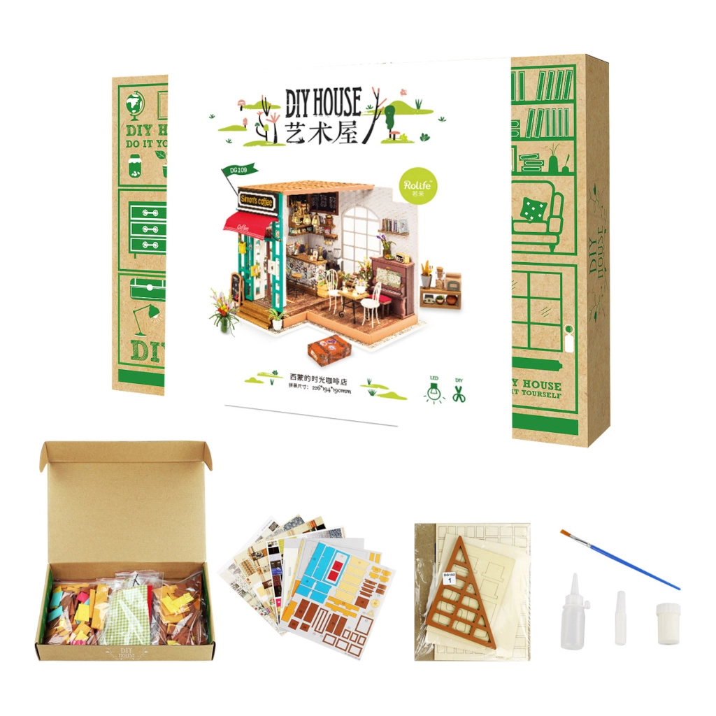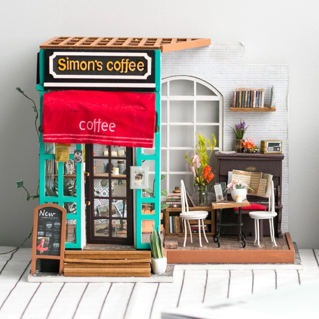 Uzbūvējiet savu pašu mājīgo kafejnīcu detalizētas miniatūras veidā no zīmola RoboTime. Komplektā ir reālistiski aksesuāri, patīkams LED apgaismojums un viss nepieciešamais iepakojumā. Izbaudiet radošu atpūtu montēšanas laikā un iegūstiet skaistu interjera dekorāciju.