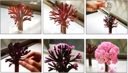 Burvju ziedošais kociņš jūsu mājās dažu stundu laikā ienesīs pavasarīgu noskaņu. Papīra koka siluets pēc aplaistīšanas uzsūc šķīdumu, un uz zariem veidojas smalki, gaisīgi kristāli rozā toņos – kā ziedoša sakura. Pateicoties caurspīdīgajam trauciņam, kociņš izceļas uz rakstāmgalda, plaukta vai naktsskapīša.