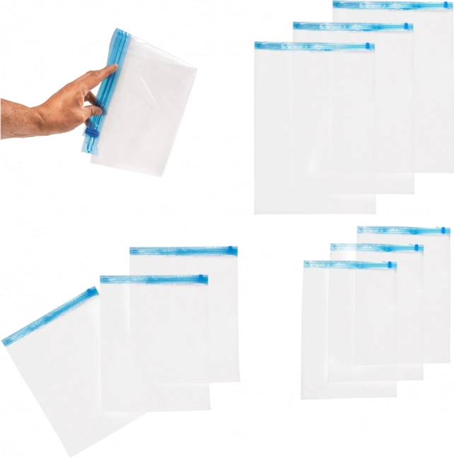 Vajadzīgs ietaupīt vietu skapī? Mūsu vakuuma ruļļi drēbēm ir tieši tas, kas jums nepieciešams! Šajā komplektā ir deviņi ruļļi trīs dažādos izmēros (35x50 cm, 40x50 cm, 50x70 cm), kas lieliski pasargās jūsu mantas no putekļiem, mitruma un nepatīkamām smakām. Tie ir ideāli ne tikai sezonālajam apģērbam, bet arī dvieļiem, gultas veļai, mīkstajām rotaļlietām un citiem tekstilizstrādājumiem.