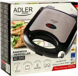 Izbaudiet ātras brokastis un vakara našķus ar sendvičpannu ADLER AD 3015. Kompakta ierīce ar nepielīpošām plāksnēm veido perfekti apceptus trīsstūrveida tostus bez pielipšanas. Gaismas indikatori jūs pavada no uzsildīšanas līdz brīdim, kad ierīce ir gatava lietošanai.