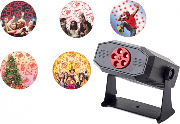 Izbaudi iespaidīgus gaismas efektus bez sarežģītas uzstādīšanas. Projektors ar rotējošu lēcu projicē košas sarkanas animācijas piecos motīvos – no romantiskām sirsniņām līdz zvaigznēm un diskotēkas rakstiem. Pateicoties iebūvētajam skaļrunim, tālruni vai planšeti var pievienot ar audio kabeli un papildināt šovu ar iemīļotu mūziku.