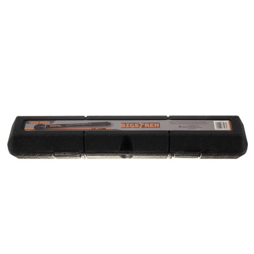 Profesionāla 3/8" griezes momenta atslēga no BIGSTREN ar diapazonu 7–112 Nm un precizitāti ±4 % uzticamai un precīzai pievilkšanai. Tai ir reversējamā sprūdrata galva, LOCK/UNLOCK slēdzis drošai momenta iestatīšanai, pretbuksēšanas rokturis un skaidri salasāma skala. Komplektā aizsargapvalks un kalibrēšanas sertifikāts ar unikālu sērijas numuru.
