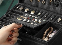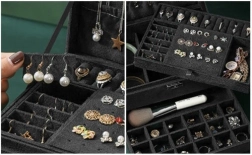 Vairāklīmeņu iekšējais dalījums: āķi ķēdītēm, vietas gredzeniem un auskariem, gan lielie, gan šaurie nodalījumi un atvilktne. Viss ir savā vietā un uzreiz pa rokai.