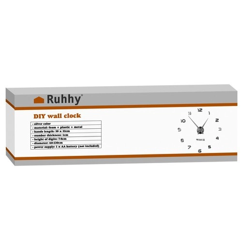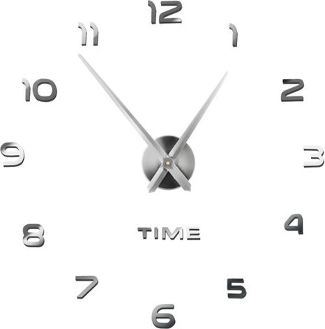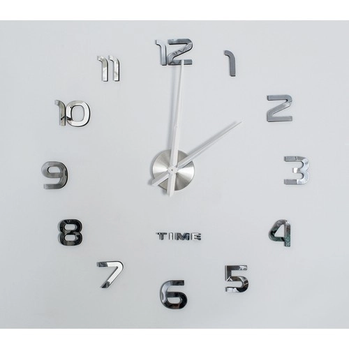 Moderns sienas pulkstenis pašmontāžai ar regulējamu diametru 60–130 cm izcili papildinās jebkuru interjeru. Spīdīgie sudrabainie 3D cipari ar spoguļa efektu veido elegantu dizainu, bet klusā vienmērīgā darbība bez tikšķēšanas nodrošina mieru gan viesistabā, gan guļamistabā. Pateicoties iekļautajai šablonam un pašlīmējošiem cipariem, montāža ir ātra un vienkārša. Barošana ar 1× AA bateriju (nav iekļauta komplektā).