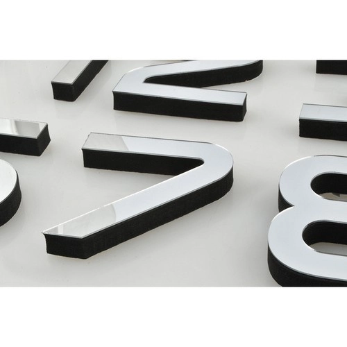 Spīdīgas sudrabainas uzlikas uz cipariem veido modernu 3D efektu, kas izceļas uz jebkuras sienas un vizuāli izgaismo interjeru.