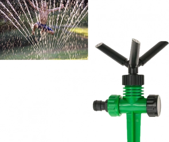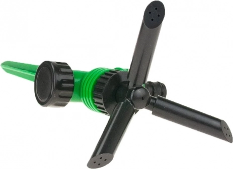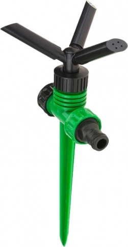 Rotējošā galva ar trim rokām vienmērīgi izkliedē ūdeni pa visu zālienu un dobēm. Ideāli regulārai laistīšanai bez sausajiem plankumiem.