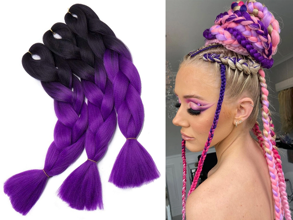 Šis košais violets ombre stils ir ideāls oriģinālām frizūrām, kuras varat pielāgot atbilstoši notikumam. Izveidojiet apburošu izskatu festivālā, karnevālā vai citā pasākumā, izmantojot šīs universālās pīnes.