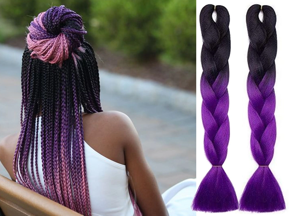 Pāreja no melnas uz violetu piešķir matiem dziļumu un dinamisku ombre efektu.
