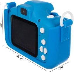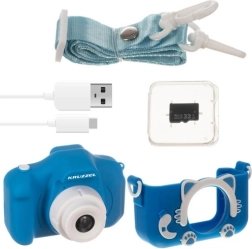 Izklaidējoša bērnu fotokamera KRUZZEL ar 2" displeju, pašbildes funkciju un video ierakstu Full HD kvalitātē. Komplektā ietilpst 32 GB karte, mīlīgs silikona apvalks kaķa formā, 5 spēles brīvajam laikam un vienkārša vadība bērniem no 3 gadu vecuma.