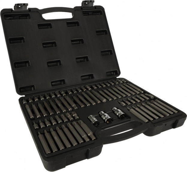 - 75 detaļas plašam pielietojumam – HEX, RIBE, SPLINE, TORX, TORX Security