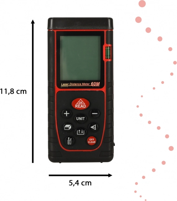 Ar divām standarta AAA baterijām jums nebūs jāuztraucas par biežu uzlādi. Tālmērs piedāvā virkni funkciju, tostarp garuma, laukuma un tilpuma mērīšanu, Pitagora teorēmas pielietojumu, saskaitīšanu un atņemšanu. Pievienotais līmeņrādis un lietotājam draudzīgs interfeiss nodrošina ērtu lietošanu.