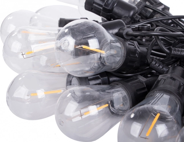 Virkne beidzas ar blīvu skrūvējamu savienojumu, tāpēc varat viegli savienot vairākas virtenes un pielāgot garumu savām vajadzībām. Caurspīdīgie spuldžu pārsegi ir izgatavoti no izturīga plastmasas, kas ir viegla un praktiska biežai pārvietošanai un sezonālai lietošanai.