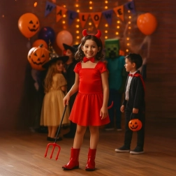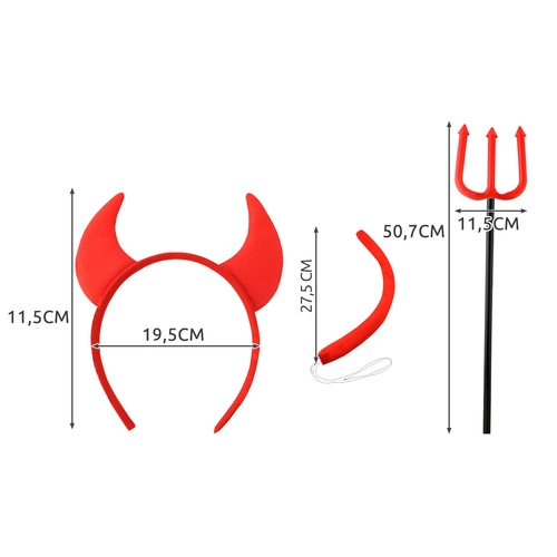 Stilīgs velniņa kostīms košā sarkanā krāsā acumirklī pārvērtīs gan bērnu, gan pieaugušo. Pateicoties mīkstiem materiāliem un elastīgiem stiprinājumiem, aksesuārus ir viegli uzlikt, un tie patīkami turas visas izklaides laikā. Komplekts ir ideāli piemērots mājas lomspēlēm, skolas pasākumiem, fotosesijām un ballītēm.