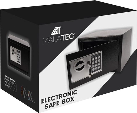 Praktiskais elektroniskais seifs MALATEC XL apvieno koda slēdzenes ērtumu ar mehāniskās atslēgas drošību. Tajā ērti glabāsiet naudu, rotaslietas, dokumentus līdz A5 formātam un citas vērtslietas. Pēc trim kļūdainiem mēģinājumiem tiek aktivizēta 30 sekunžu blokāde ar gaismas un skaņas signalizāciju, vājas baterijas norāda LED indikators.