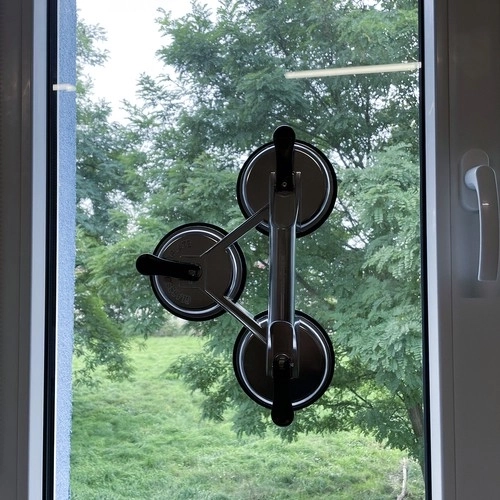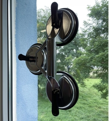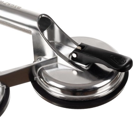 Trīs lielas sūknējspiedes sadala slodzi un ļauj droši manipulēt ar smagiem un trausliem paneļiem bez bojājumu riska.