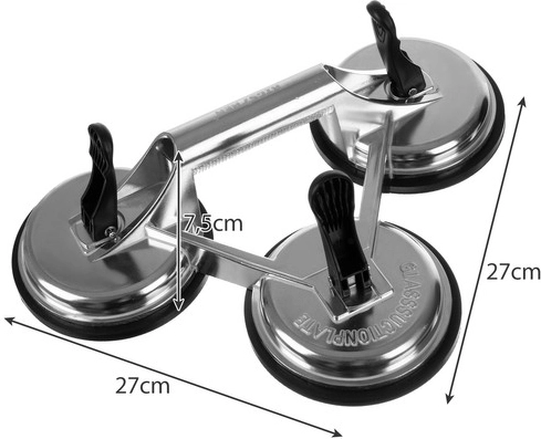Šī robustā alumīnija trīskāršā sūknējspiede BIGSTREN ir ideāla izvēle montieriem, stikliniekiem un mājas meistariem. Trīs lielas 120 mm gumijas sūknējspiedes ar mehānisku sviras piespiedienu nodrošina spēcīgu un stabilu fiksāciju uz gludām, neporainām virsmām, piemēram, stikla, metāla, glazūras vai lakota koka.