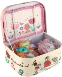 Ikviena mazā meitene tagad var pasniegt tēju un kafiju savām draudzenēm un mīļākajām mantiņām ar šo burvīgo tējas komplektu. Komplektam ir praktisks koferītis, kas to padara par ideālu izvēli spēlēm ceļā.