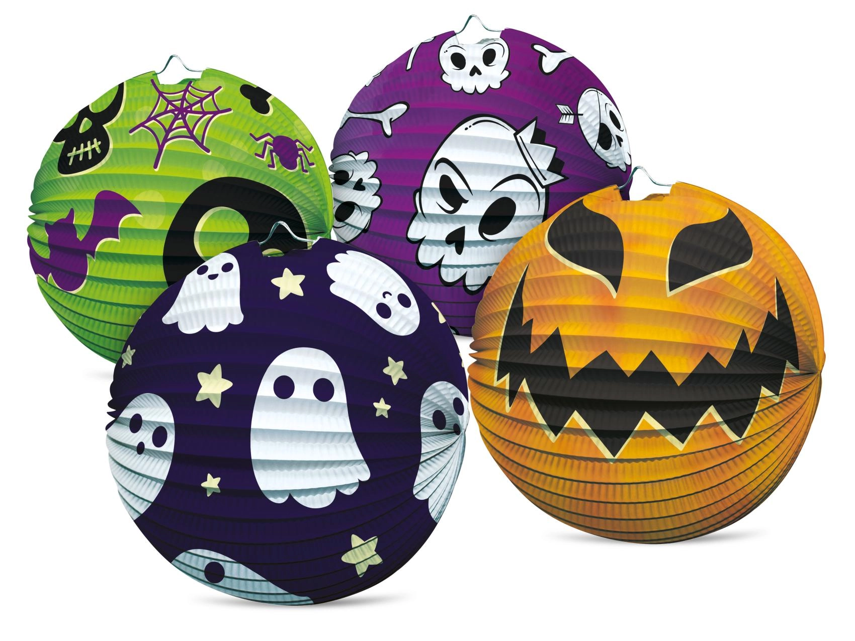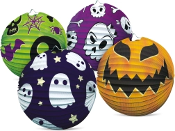 Stilīgs Helovīna lampions lodītes formā ar diametru 25 cm izgaismos jebkuru ballīti, dārza svētkus vai lampionu gājienu. Pateicoties salokāmajai konstrukcijai, tas ir viegls, viegli piekārams un dažu mirkļu laikā radīs spocīgu noskaņu. Pieejami 4 dažādi Helovīna dizaini ar ķirbi, spoku, galvaskausiem un zirnekli. Ideāli piemērots kā piekarināma dekorācija interjerā un pārsegtos āra pasākumos.