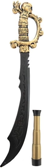 Šis pirātu komplekts iedvesmos ikvienu mazo piedzīvojumu meklētāju drosmei un fantāzijai. Galvenais elements ir viegls un drošs plastmasas asmens 58 cm garumā ar dekoratīvu rokturi, kas lieliski guļ rokā. Kopā ar aksesuāriem tas veido autentisku pirātu tēlu lomu spēlēm, kostīmiem un tematiskām aktivitātēm.