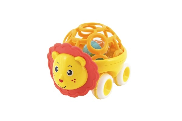 Mīlīgs plastmasas grabuliņš auto formā ar dzīvnieciņu ir ideāla pirmā rotaļlieta mazuļiem no 3 mēnešu vecuma. To ir viegli satvert, tas ir viegls un, pateicoties brīvgaitai, maigi ripo. Veicina smalkās motorikas attīstību, sensoro uztveri un pirmo acu–roku koordināciju. Pieejams divās krāsu versijās.
