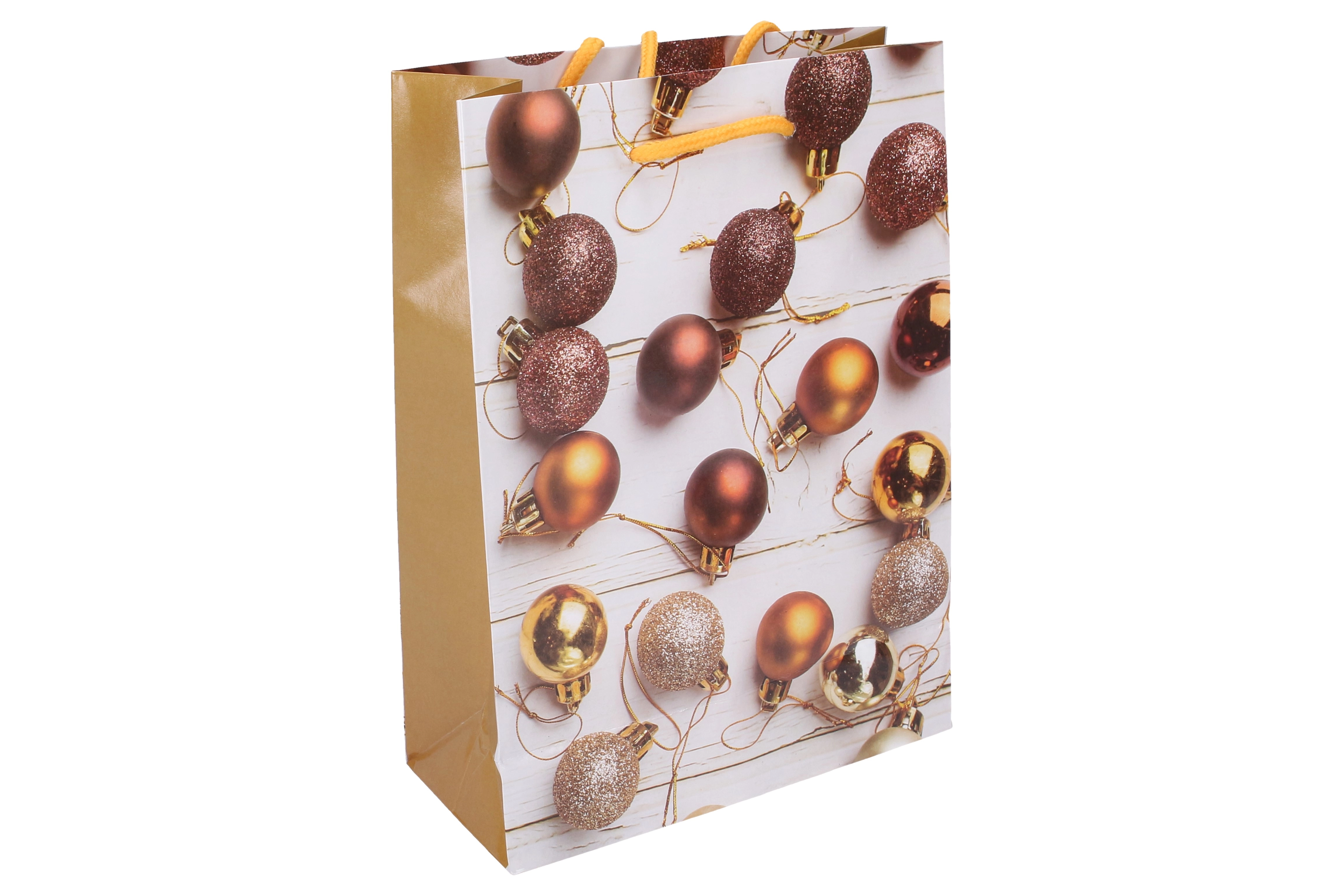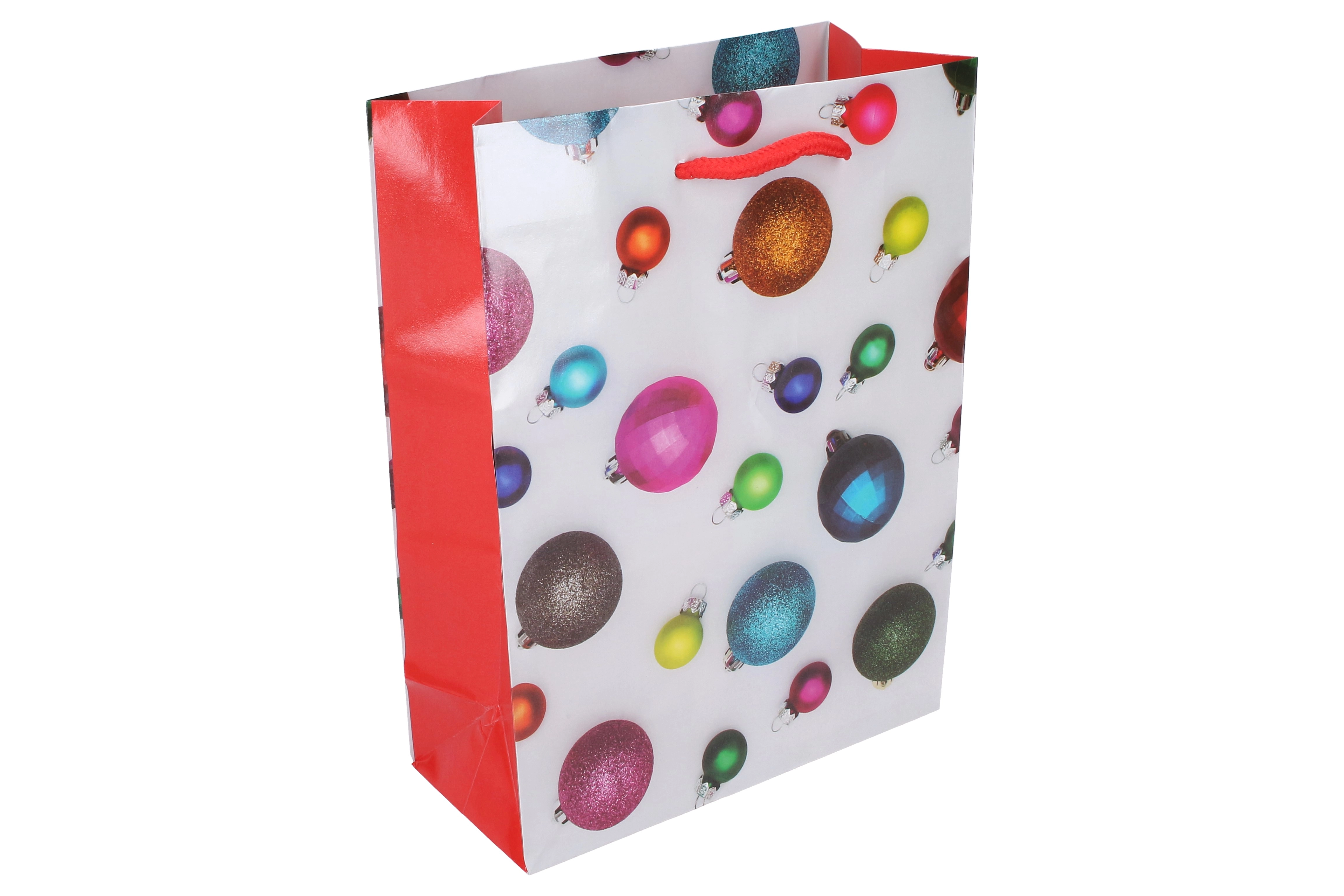 Elegants Ziemassvētku dāvanu maisiņš izmērā L 32x44x11 cm ir ideāls risinājums jūsu Ziemassvētku dāvanu iesaiņošanai. Pieejams četros dažādos krāsu variantos, šis maisiņš ne tikai pasargās jūsu dāvanas, bet arī piešķirs tām greznības un prieka noskaņu, pateicoties svinīgajam dizainam.