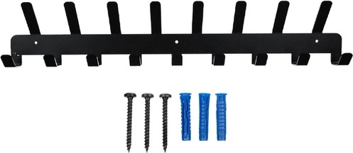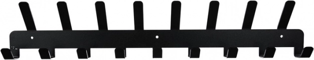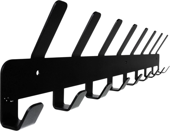 Sakārtojiet mēteļus, jakas, somas un aksesuārus pārskatāmi vienuviet. Šis sienas pakaramais piedāvā 9 apakšējos un 8 garākus augšējos āķus, nodrošinot pietiekami daudz vietas visai ģimenei. Minimalistiskais izskats un melnais tonis lieliski iederas gan modernos, gan klasiskos interjeros.