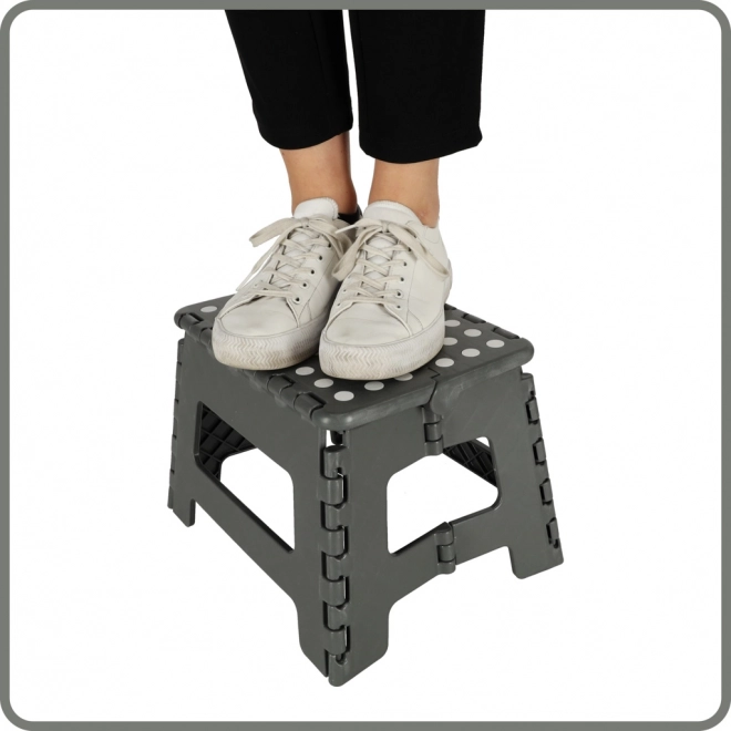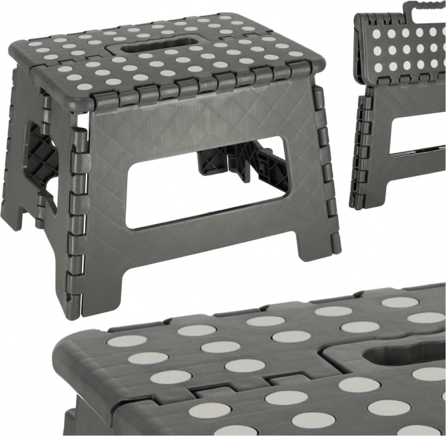 Šis kompaktais saliekamais soliņš ir lielisks palīgs visur, kur nepieciešams ātri iegūt stabilu atbalstu vai zemu sēdvietu. Vieglā un izturīgā plastmasas konstrukcija viegli salokāma un atlokāma, un pateicoties neslīdošajai augšējai virsmai un stabilajai pamatnei nodrošina drošu lietošanu.