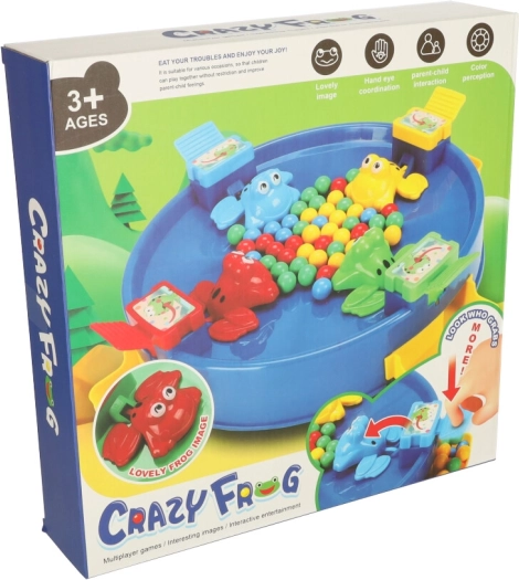 Izbaudiet unikālu izklaidi ar lēkājošajām vardēm, kur iesaistās visa ģimene. Spēle paredzēta 2 līdz 4 spēlētājiem, kuri sacenšas, ķerot pēc iespējas vairāk bumbiņu ar krāsainām vardēm, kas izvietotas ap dīķi. Izklaide sākas, kad iebērtas bumbiņas spēles centrā, un vardeņu “rījējas” mehānika ievelk spēlētājus spēlē.
