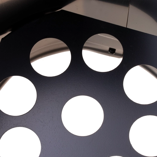 Sešstūra ventilācijas atveres nodrošina spēcīgu vilkmi un vienmērīgu brikešu iekarsēšanu dažu minūšu laikā.