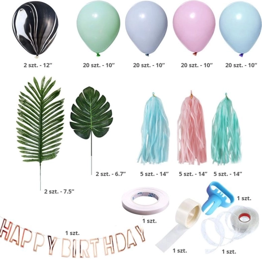 Pilns krāsains noformējums dzimšanas dienas ballītei dažu minūšu laikā. Komplektā ir baloni un uzraksts “Happy Birthday”, ar kuriem izveidosiet efektīgu foto stūrīti un svinīgu fonu gaviļniekam. Virteni varat viegli salikt pēc vajadzības un papildināt ar papildu baloniem bagātīgākam izskatam.
